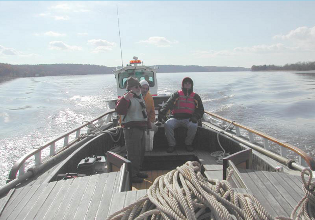 View from the foredeck as the Woody is being pushed up the Hudson River from New Hamburg to the Port of Albany (2006)