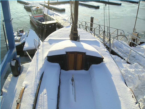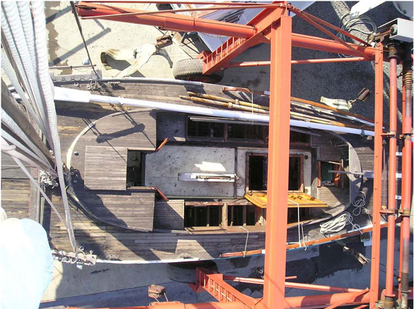View of the Woody from the rigging after it was hauled out of the water. (2005):